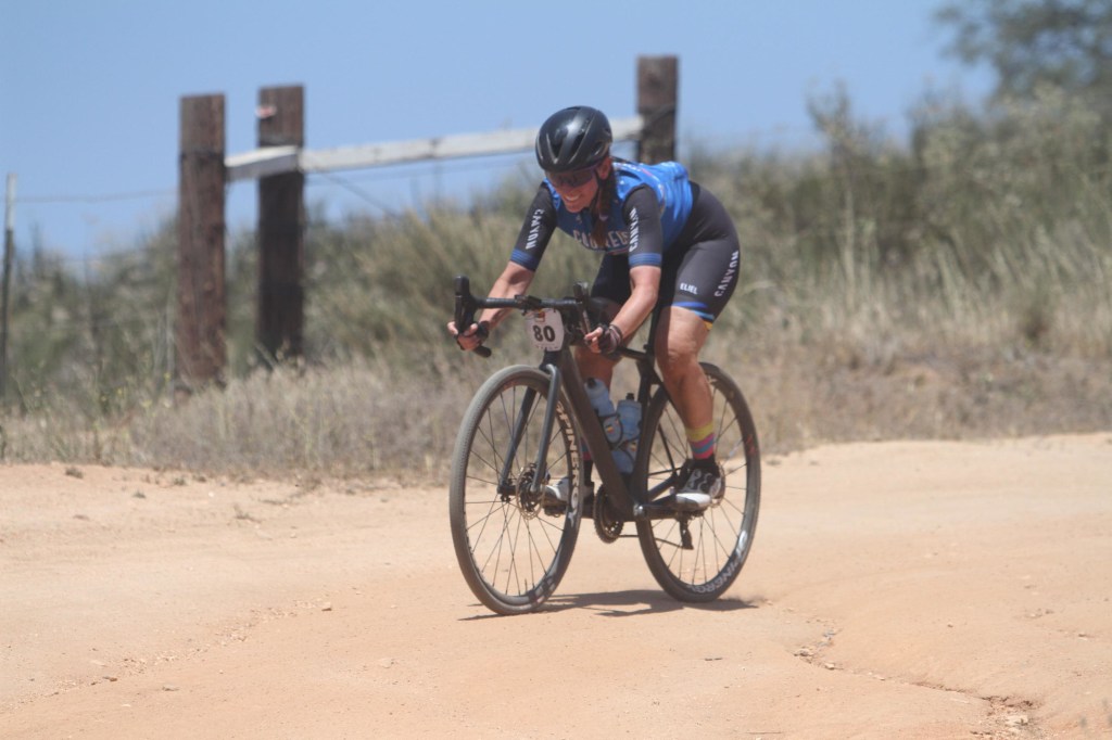 The next ten miles or so are a blur of straight line gravel followed by an absolutely hellish two miles in a riverbed at mile 113. Riding that surface, where staying seated is required is absolute misery this far into an event like this. Next a final river crossing where I made faces and sounds I don’t think I’ve ever made on a bike, but I rode it. By now I’m basically drooling on my stem, just following Echo’s line, not noticing all the sharp fixed rocks, but somehow not flatting. Jesu-Cristo, does she ever stop pedaling? I. Just. Want. To. Coast. For. A. Minute.