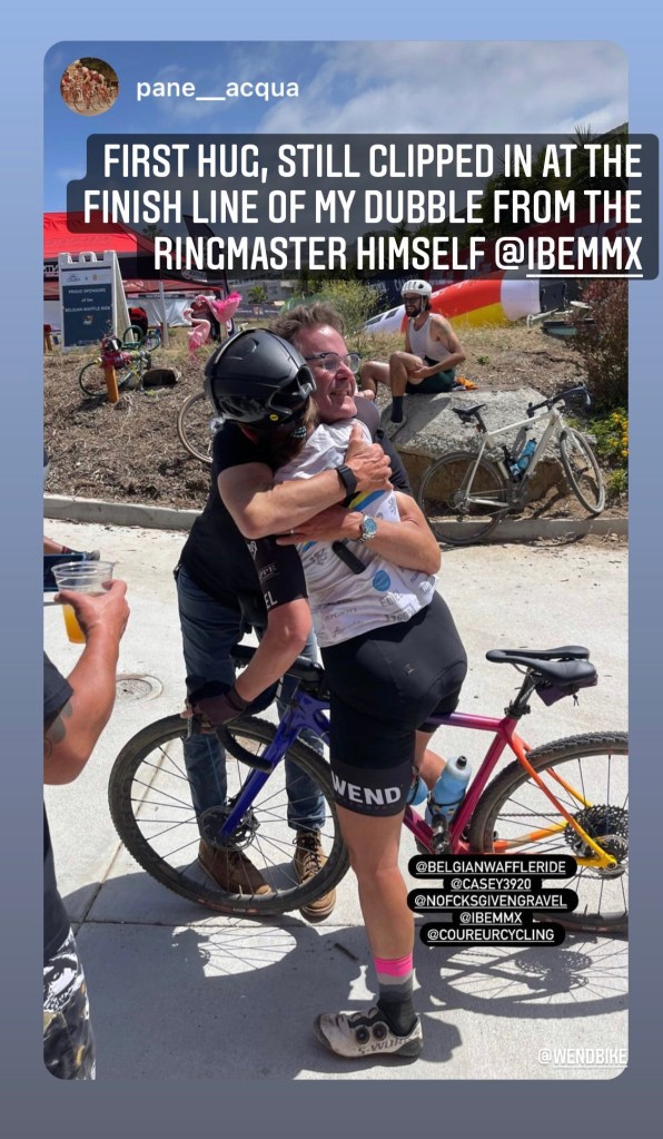 MMX, Terry Ford, Dan Hughes and so many friends there at the finish line to greet us. What a great day. GOOD VIBES ONLY ….. DON’T TELL ME WHAT KIND OF VIBES TO HAVE! But for real, this has to be the most positive BWR I’ve ever experienced. The rider enthusiasm all around us all day was great, this is the whole point. I like to think of myself as being a representation of the BWR Everyman, the Proletariat if you will (with a Canyon Ultimate Evo with Zipps in her Plaid parked on her turquoise and purple epoxy floor, I know, I know, shut up). But anyway, the day starting with that call up felt like a recognition of those of us who have helped grow this branch of our sport. Yeah, It’s cool that pros are into this now, but never forget the huddled masses in their Teslas. The vast majority of us are never going to be truly fast, so focusing on making it fun is my move, and the road bike set up was a great way to do that.