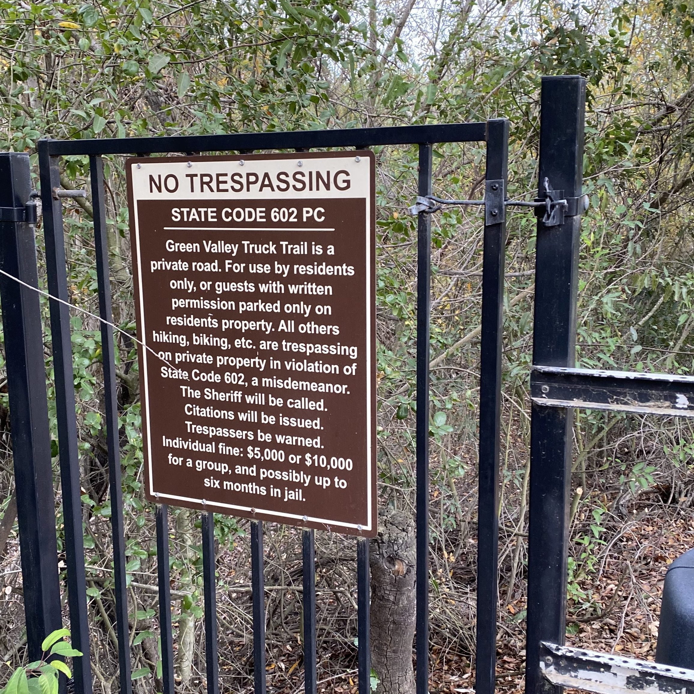 Pic from a few years back of this very aggressive no trespassing sign. I didn’t actually turn down the road to look at it.