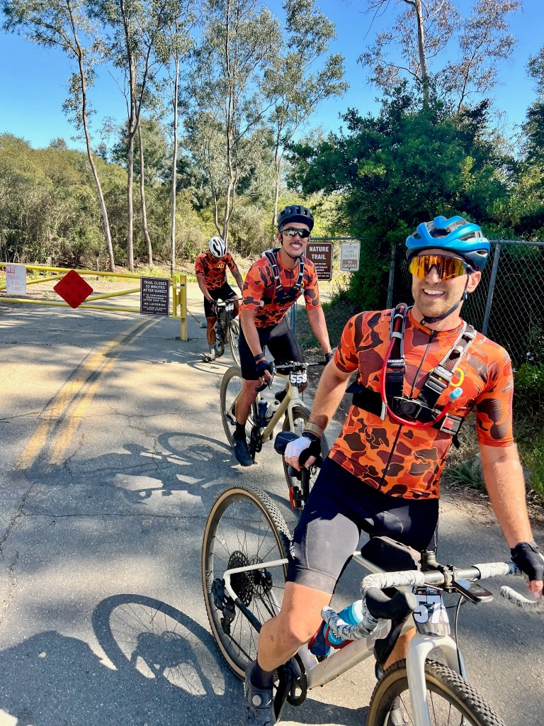 We head into the last 18 miles, and I gotta say, road tires are soooo nice. This part of the day from Del Dios to the top of Double Peak is always super hard, but not carrying more bike and tires than you need is so luxurious 7.5 hours in. We get to the Del Dios/Via Rancho stoplight and I see the orange camo guys pulled over, one of them cramping. I scramble to find my last two salt tabs in a baggie. I pedal by slowly and yell “YOU WANT SOME SALT” and miss the hand off to the first guy, “YES PLEASE” he says as I miss the hand off to the second guy. I GOT IT I GOT IT yells the third guy and I finally connect with him and pedal away. Andy stops at Questhaven to make a quick reel with Scalar Wheels. I drink some coke and keep going. Andy and then the camo guys catch us and he tells me the salt worked! Yay! I am stoked.