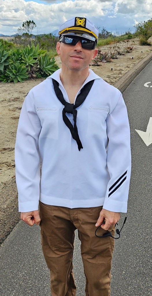 The Yacht Rack combo of halloween costume hat and actual uniform just might be enough for disciplinary action.