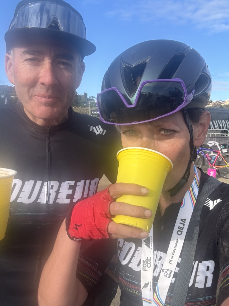 Me screaming ROAD BIKE!!! at the finish line. Pic by Todd GuntherI was the only woman in the 50+ category to finish the Triple Crown, full Waffles in Arizona, Utah and San Diego, so I “won” … but I’ll take it. Be Old. Show Up. Pic by Todd Gunther